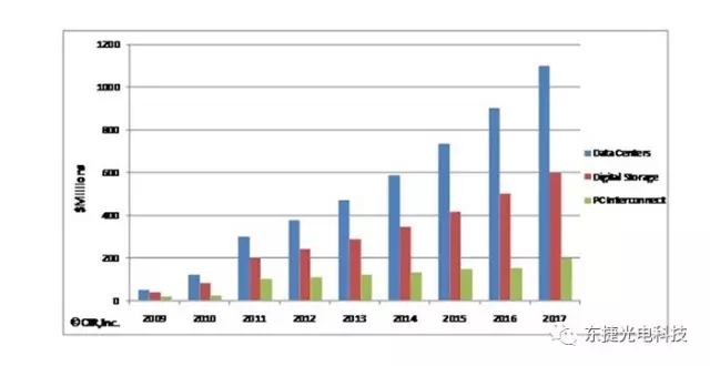 With the rapid growth of Internet and smart terminals, the explosive growth of global data has greatly promoted the development of High Performance Computing Center (HPC) and data center market with high-speed routers, supercomputing and storage as the core. Active fiber optic cable products are one of the main interconnection methods among these core devices. The Research Report of active fiber optic cable market from CIR shows that the market scale reached 720 million US dollars in 2012, which is expected to double in 2017, reaching 1 billion 900 million US dollars, with a bright future.