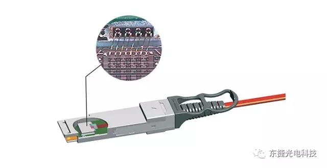 High speed optical interconnection products 40Gbps QSFP+ AOC and 120GbpsCXP AOC no longer adopt the structure design of TOSA/ROSA in traditional pluggable transceivers, while using highly integrated array light engine core device technology. The picture below is 40G QSFP+
