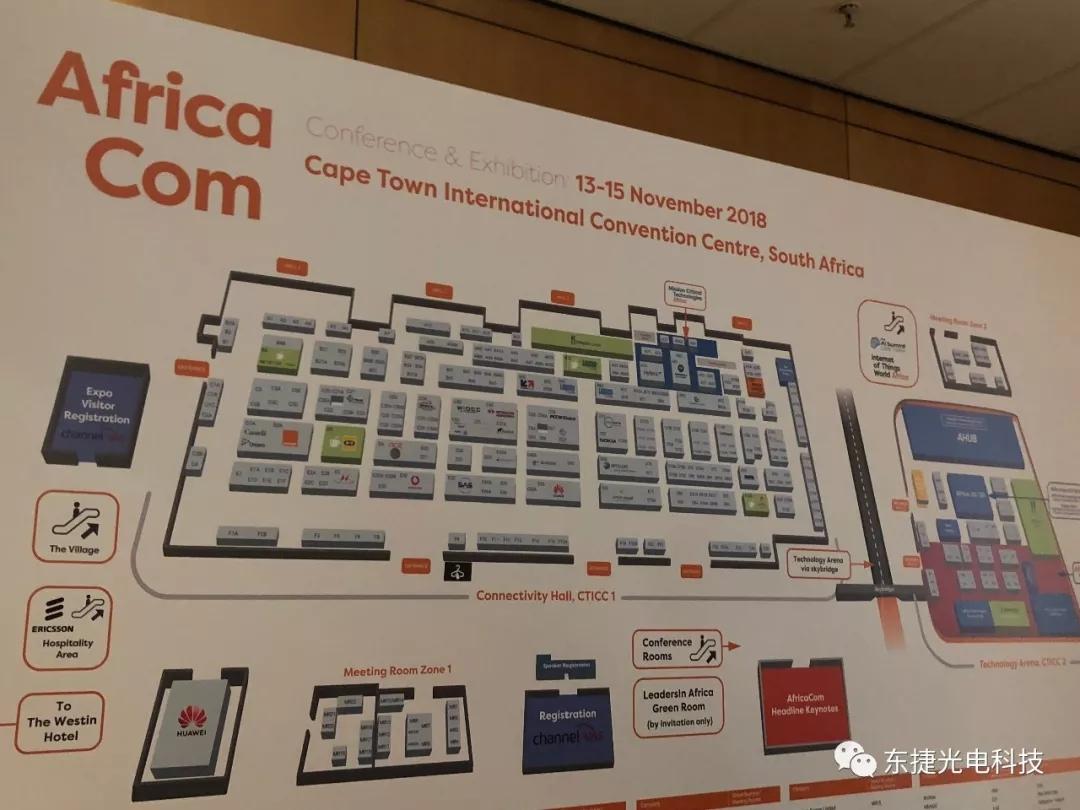 2018年11月14日,AFRICA COM開展第二天,展會現(xiàn)場,東捷光電獨特的展位形象、...