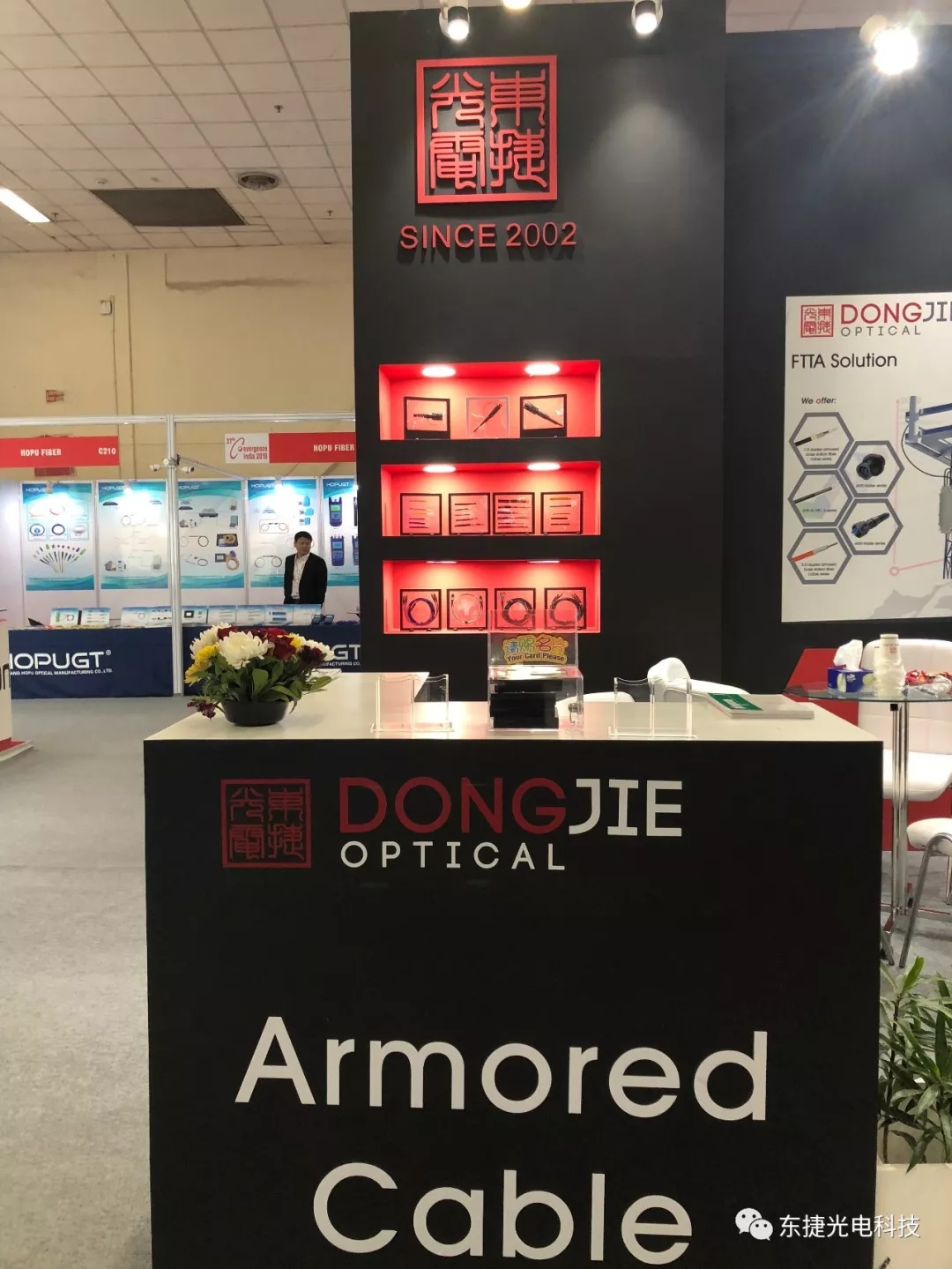 東捷光電作為鎧裝光纜領先制造商,攜最新FTTA連接器及光纜解決方案、HDMI、FTTH解決方案亮相2019年印度通信展展會現場,向全球觀眾全面展示了東捷鎧裝技術,這次展會我公司劉總攜帶專業技術人員為大家答疑解惑。